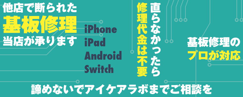 『基板故障が即日修理できる』のは、福岡ではアイケアラボだけです。基盤故障の修理ですが、他店では断られた場合でも、大切なデータを諦めないでください!!アイケアラボでは修理が可能です。